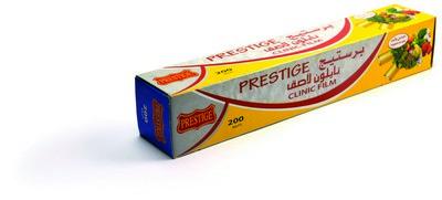 بريستيج النايلون اللاصق العلامة التجارية المعروفة في الأسواق والتي تقدم لكم أفضل الحلول في تخزين الطعام. مثالية لتخزين المواد الغذائية وحمايتها، بحيث يمسك النايلون اللاصق بالأطباق بإحكام فيحافظ على المواد الغذائية مغلقة وطازجة وبعيدة عن التلوث. متوفر بقياسات نموذجية وأحجام مناسبة، صغير 35 سم * 50 قدم – 100 قدم – 200 قدم - كبير 45 سم * 100 قدم – 30 سم * 300 م – 300 ملم * 600 غ – 30 سم * 750 غ.
