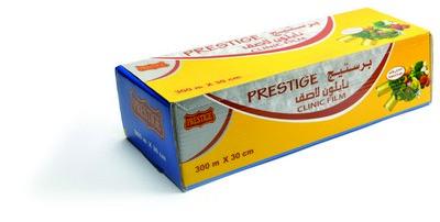بريستيج النايلون اللاصق العلامة التجارية المعروفة في الأسواق والتي تقدم لكم أفضل الحلول في تخزين الطعام. مثالية لتخزين المواد الغذائية وحمايتها، بحيث يمسك النايلون اللاصق بالأطباق بإحكام فيحافظ على المواد الغذائية مغلقة وطازجة وبعيدة عن التلوث. متوفر بقياسات نموذجية وأحجام مناسبة، صغير 35 سم * 50 قدم – 100 قدم – 200 قدم - كبير 45 سم * 100 قدم – 30 سم * 300 م – 300 ملم * 600 غ – 30 سم * 750 غ.
